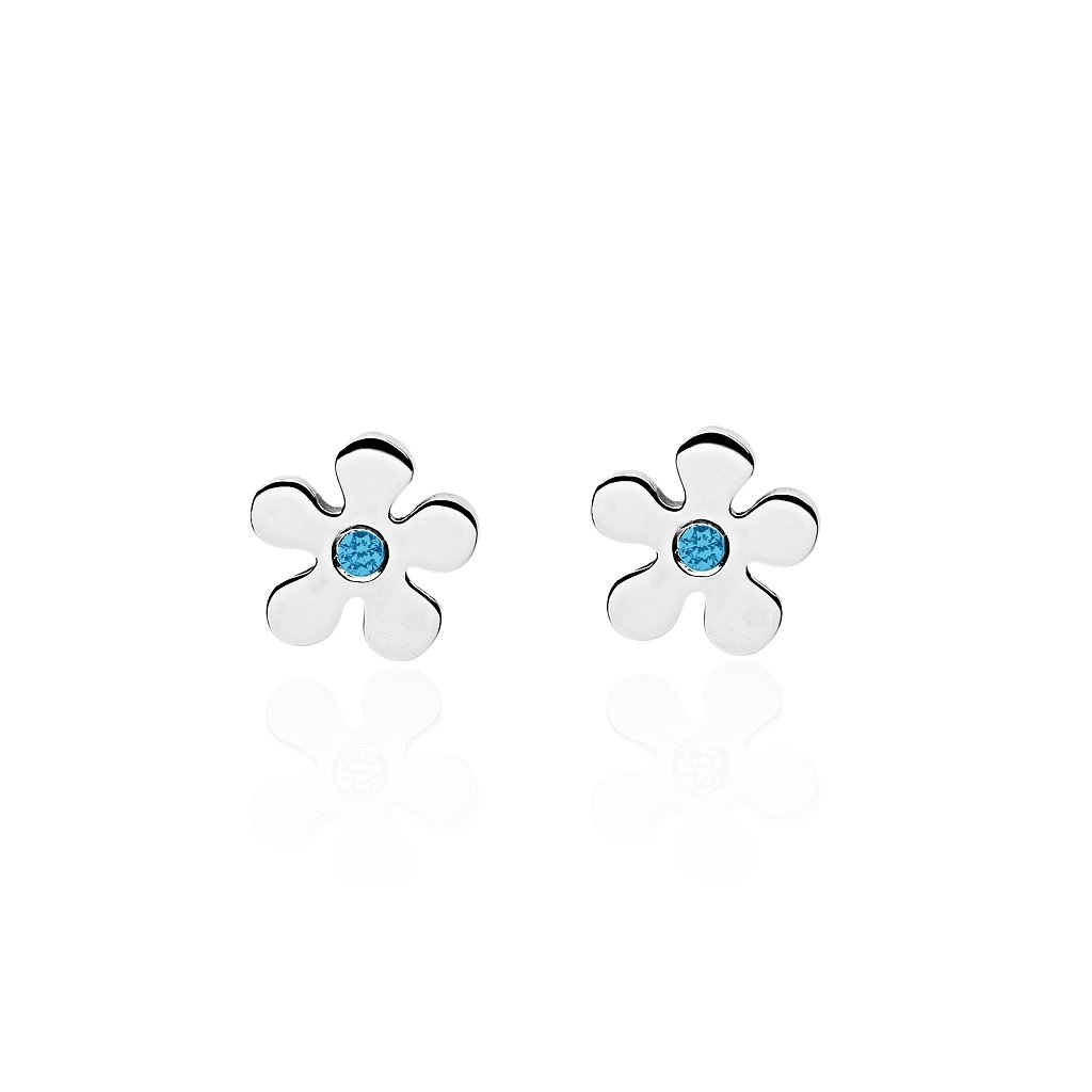Diamantové naušnice vyrobené do tvaru kytiček, v každé kytičce je jeden modrý diamant.