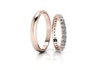 Elegantní a přesto hravé – tyto snubní prsteny z z růžového zlata o šířce 2,5 mm vynikají svým zvlněným tvarem.